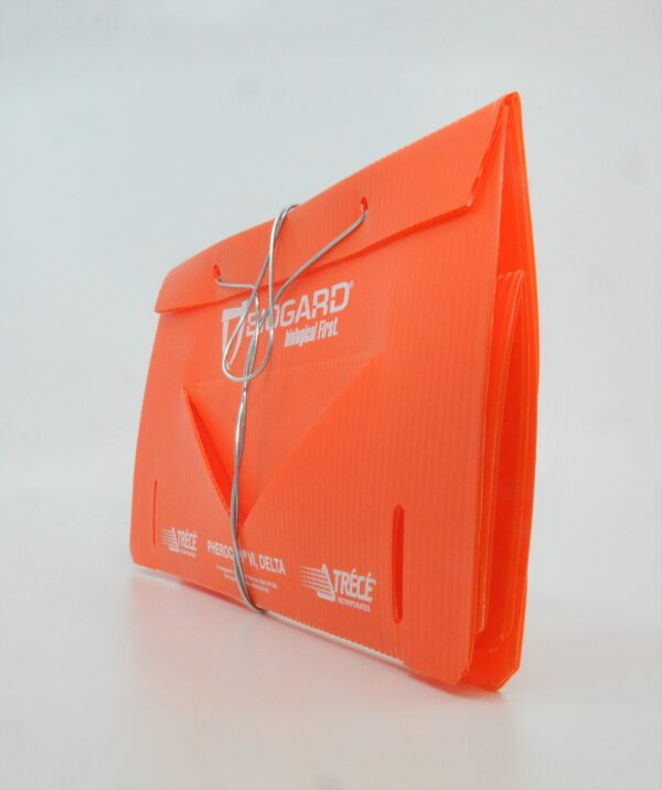 Grazie alla sua struttura, la trappola DELTA TRAP ORANGE permette una rapida ispezione del fondino collato, facilmente estraibile dal corpo centrale, senza entrare a contatto con la colla. Inoltre, può essere impiegata una linguetta che serve per l’alloggiamento dell’erogatore, così da farlo rimanere sospeso e non appoggiato sul fondo: questo garantisce un regolare rilascio del feromone contenuto nell’erogatore.