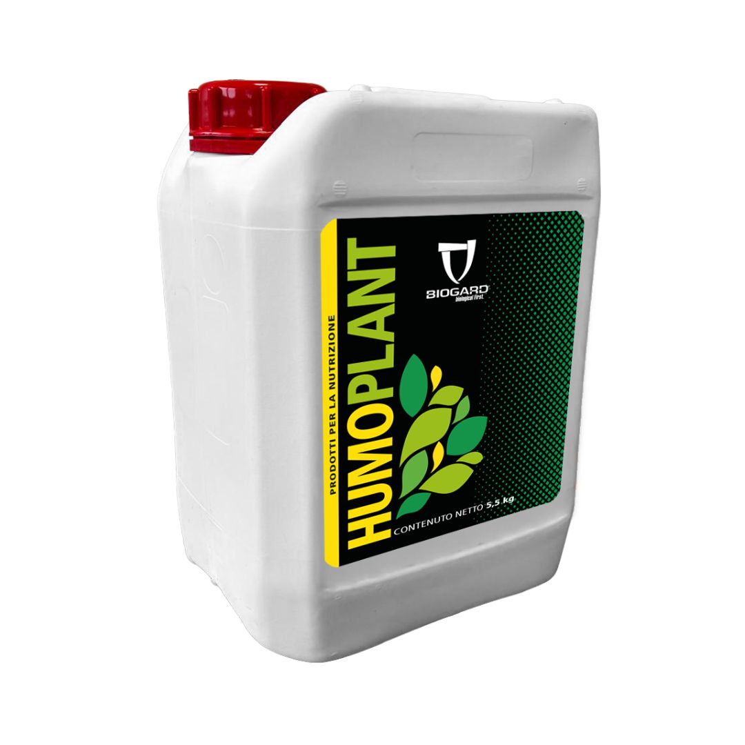 Leggi di piùHUMOPLANT è un ammendante liquido a base di Leonardite grezza a pH acido, formulato in una sospensione concentrata. HUMOPLANT è ottenuto tramite un unico e specifico processo di micronizzazione delle particelle di Leonardite e non tramite reazione chimica ad elevate temperature con Idrossido di Potassio. In questo modo vengono preservate tutte le caratteristiche originali della Leonardite, che grazie alla elevata concentrazione di Acidi Umici e Fulvici (rispettivamente al 21-22 % e 5-6%) è in grado di agire come un potente fisioattivatore per ridurre gli stress abiotici e gli effetti negativi della salinità del suolo; inoltre non vengono danneggiati gli enzimi, i polifenoli e gli aminoacidi naturalmente presenti nella materia prima. HUMOPLANT agisce anche come regolatore del pH delle soluzioni per trattamenti fogliari limitando la degradazione degli agrofarmaci dovuta all’alcalinità; per tali motivi può essere indicato per trattamenti con mezzi biologici che si avvantaggiano di un pH acido, quali ad esempio il Bacillus thuringiensis (Lepinox WG o Rapax AS). Infine, in seguito a programmi mirati con applicazioni consecutive al terreno, può ridurre significativamente il pH della rizosfera, in modo da attivare elementi quali Fosforo e Ferro, notoriamente bloccati da pH del suolo elevati.